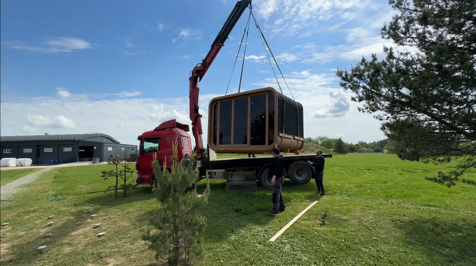 Le LUNA sauna est livré monté, prêt à poser. Ou pré monté, à installer sur place par nos professionnels, en fonctions des options et de la configuration de votre terrain.
