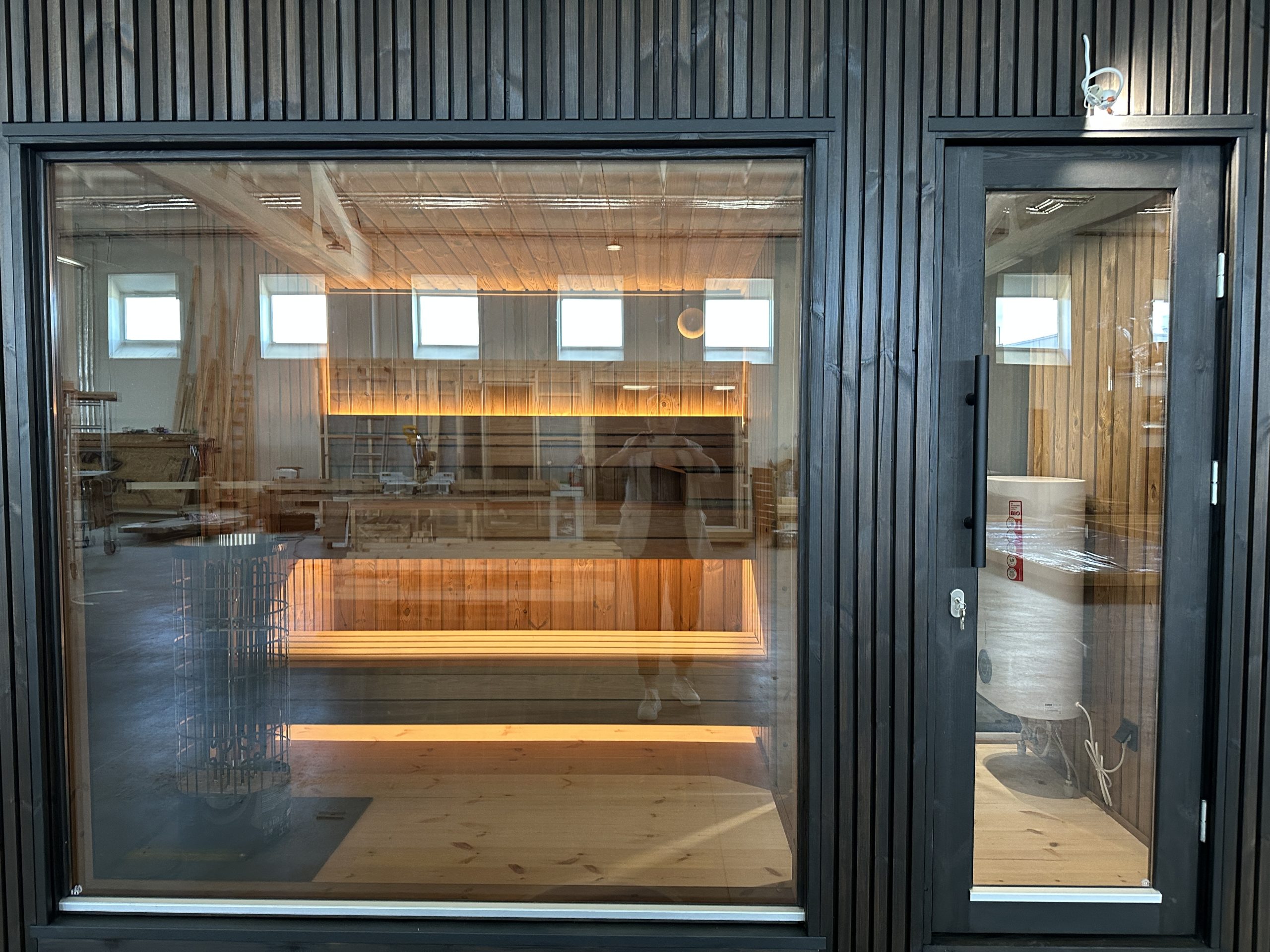 Extérieur, poêle sauna, options pour bain nordique/ spa nordique, vitre sauna…