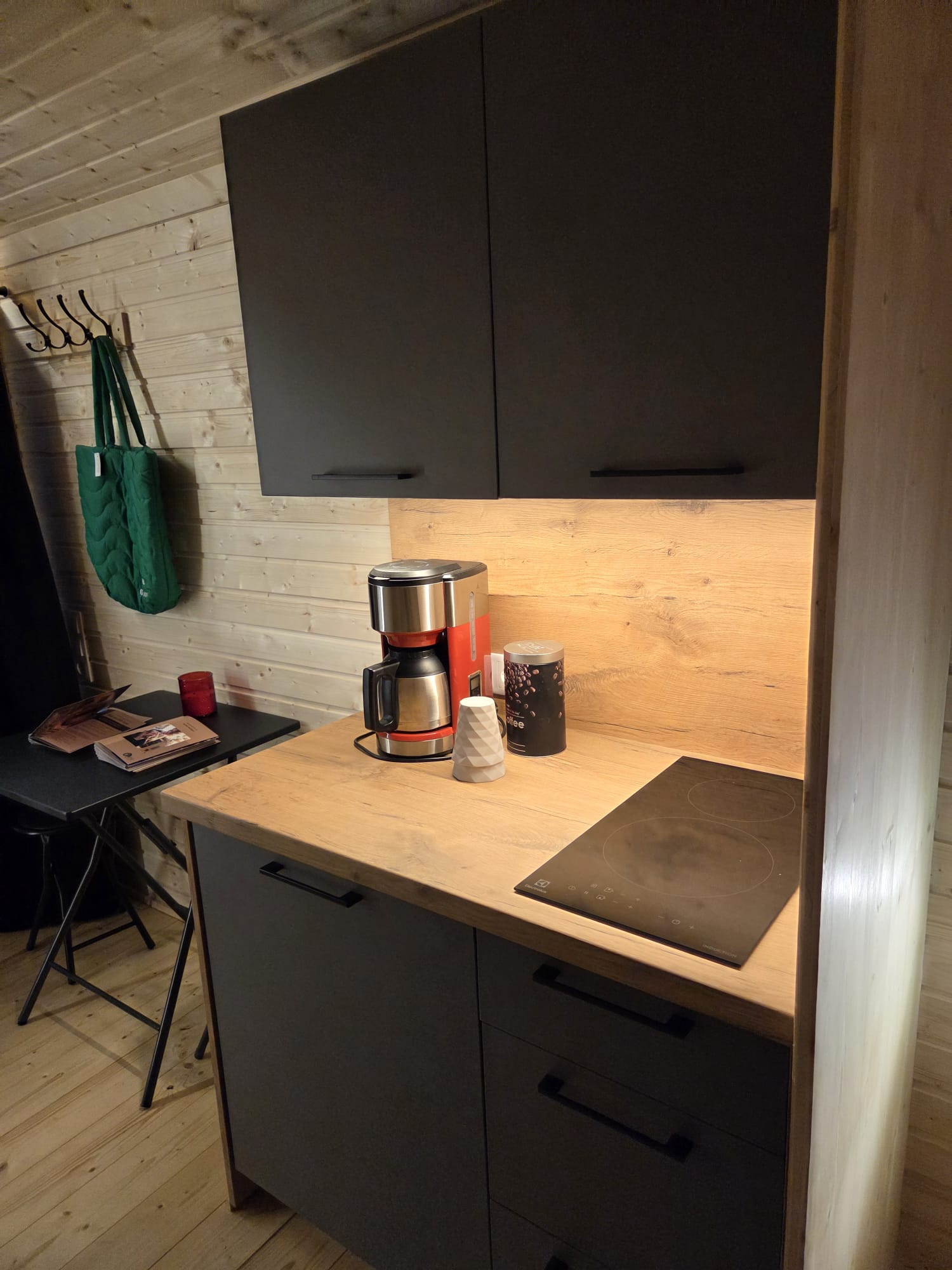 Kitchenette avec frigo top intégré + plaque de cuisson et meubles de rangements haut