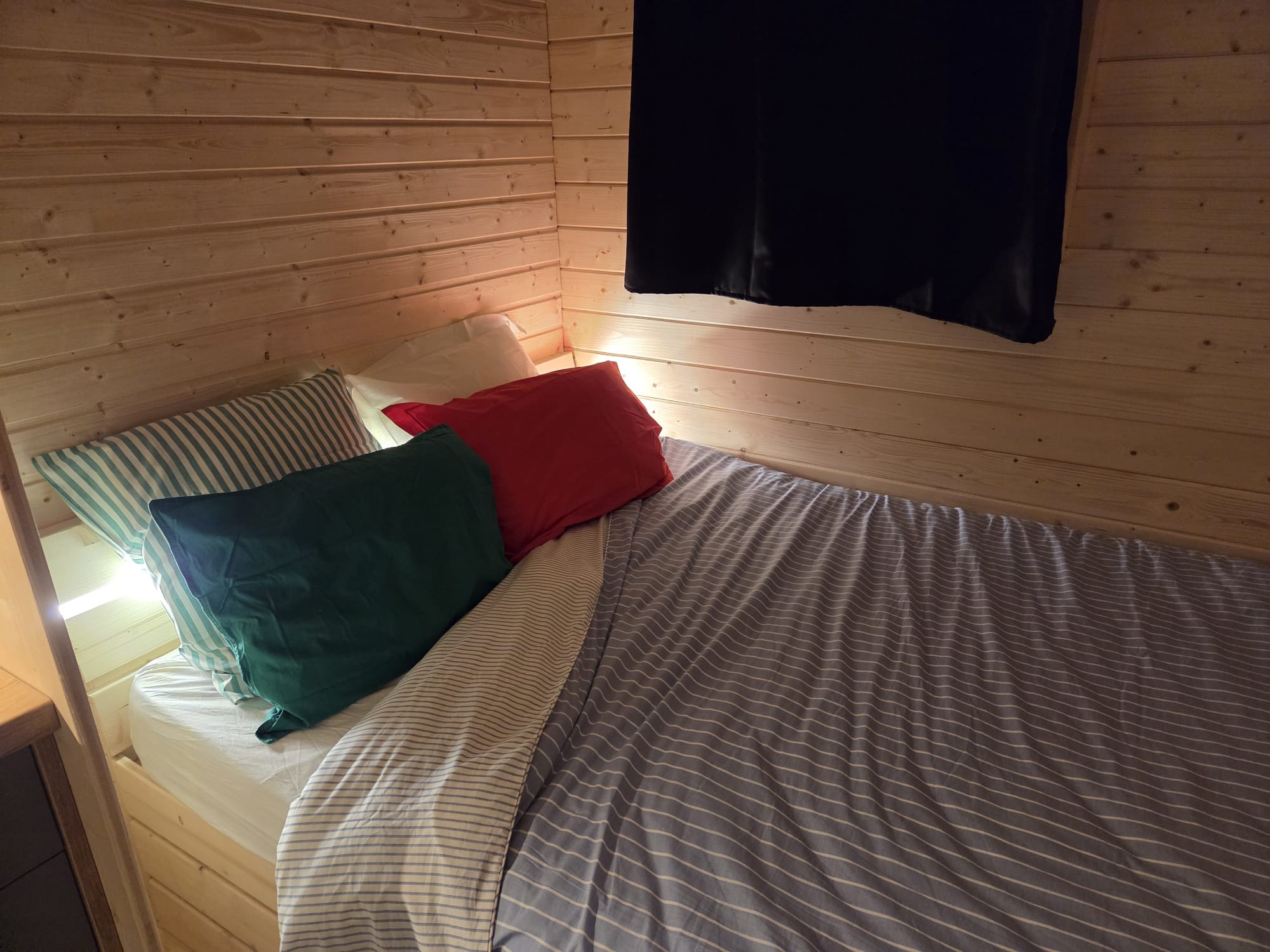 Banquette pour couchage supplémentaire, décoration, rideaux sur demande